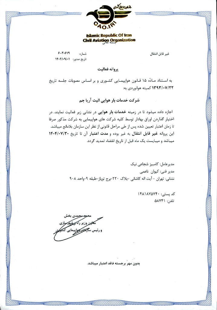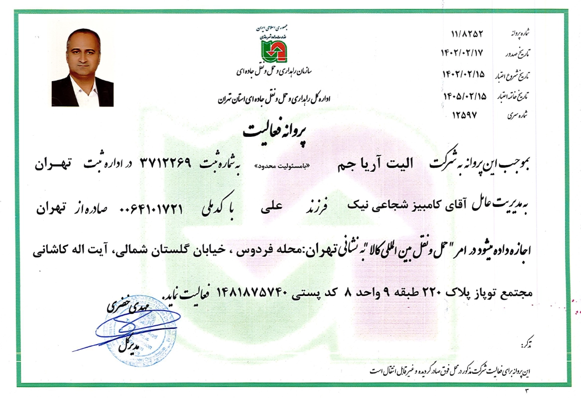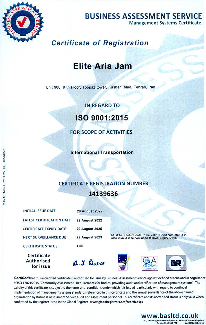 Aria Jam Logistic Company, with registration number 531801, operates in the field of foreign trade. In this company, experienced experts, considering the customer’s needs and examining the required goods, select the best supplier and inform the customers. Upon the confirmation of the order, the process of foreign procurement is put into action.