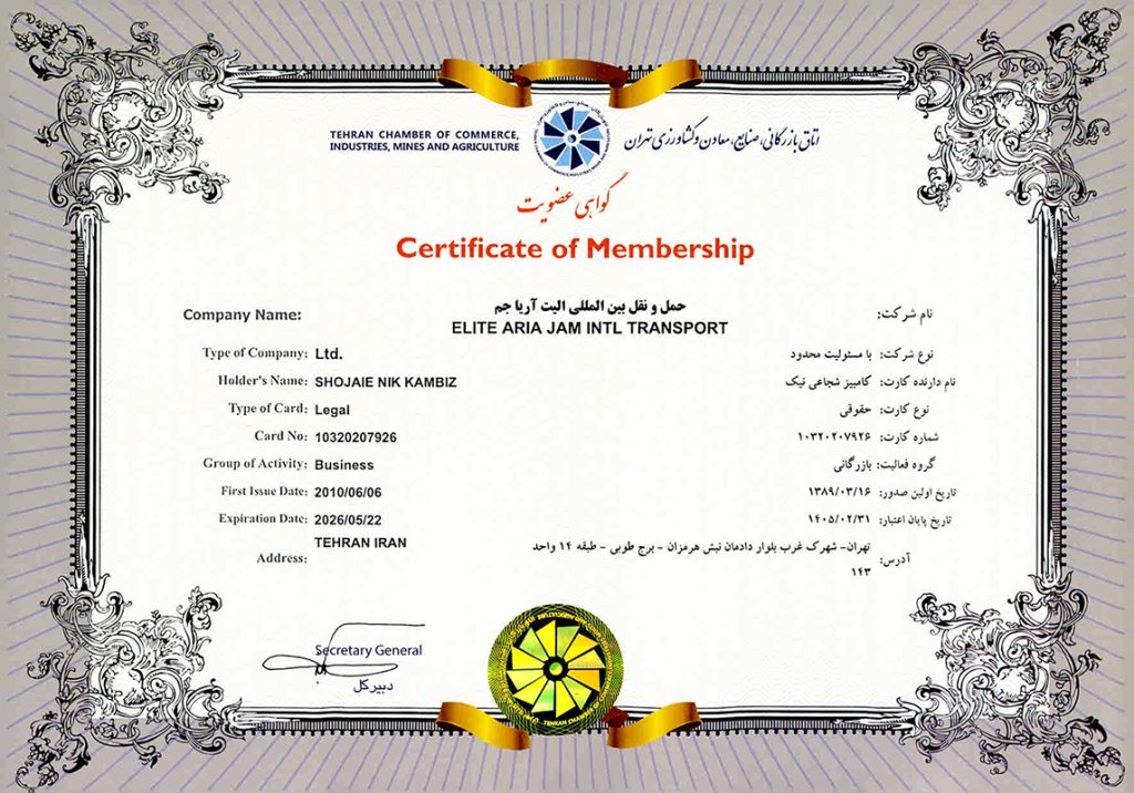 Membership in the Iranian Chamber of Commerce
