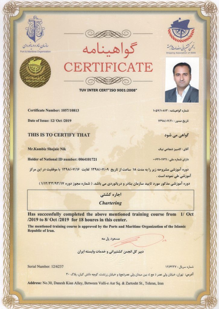 Chartering certificate
