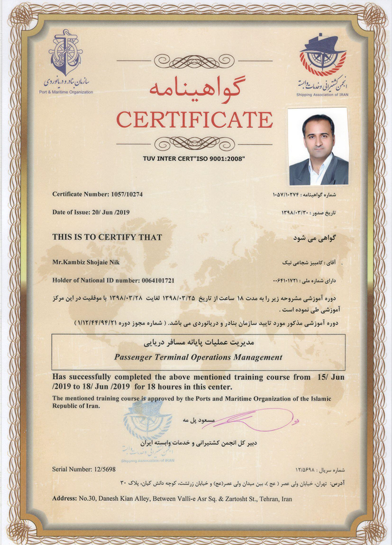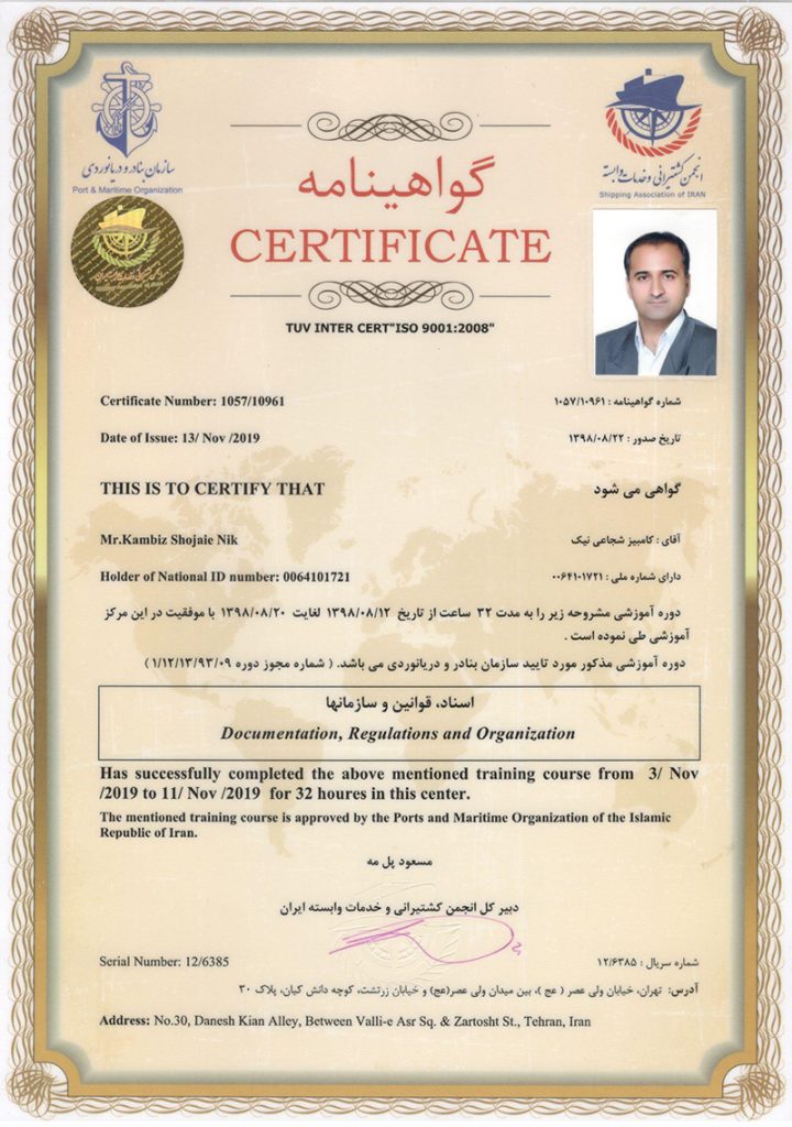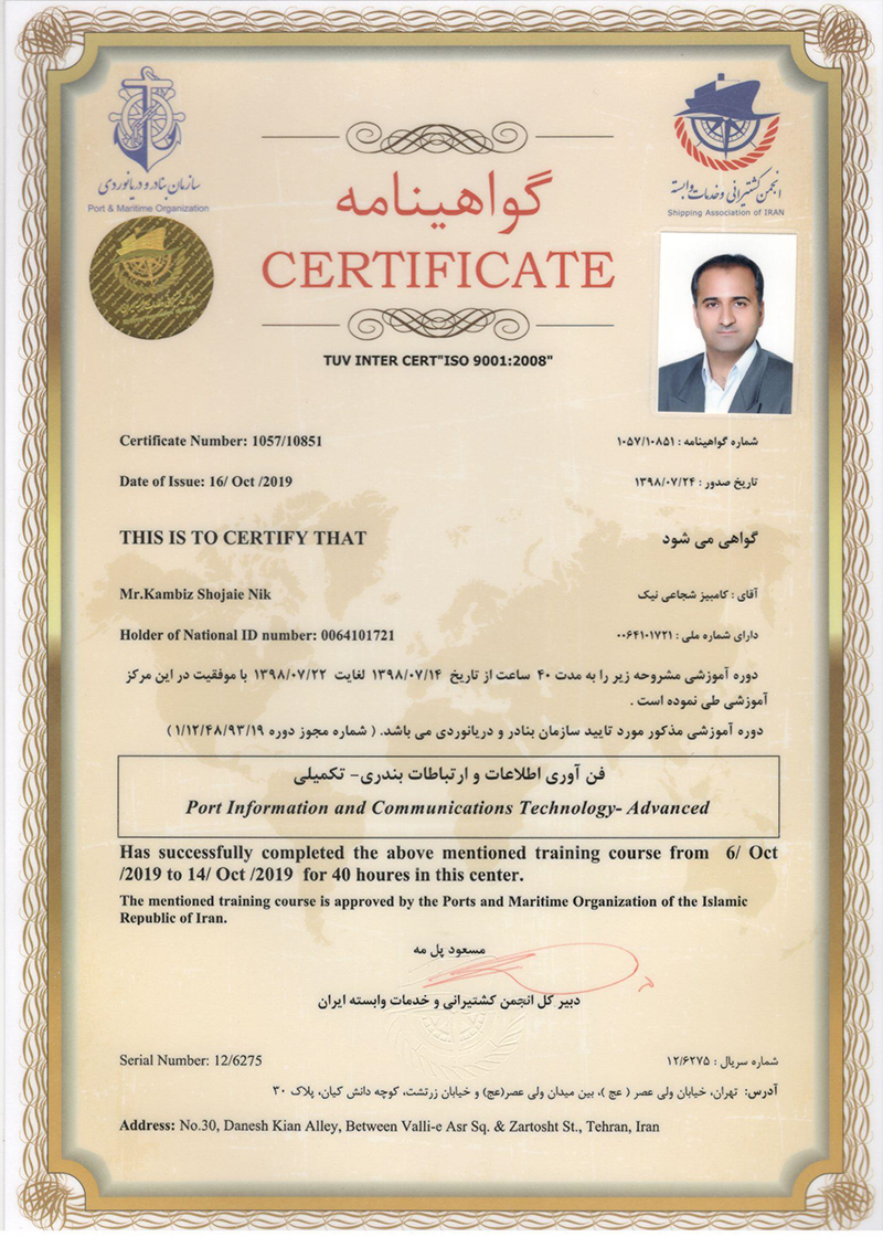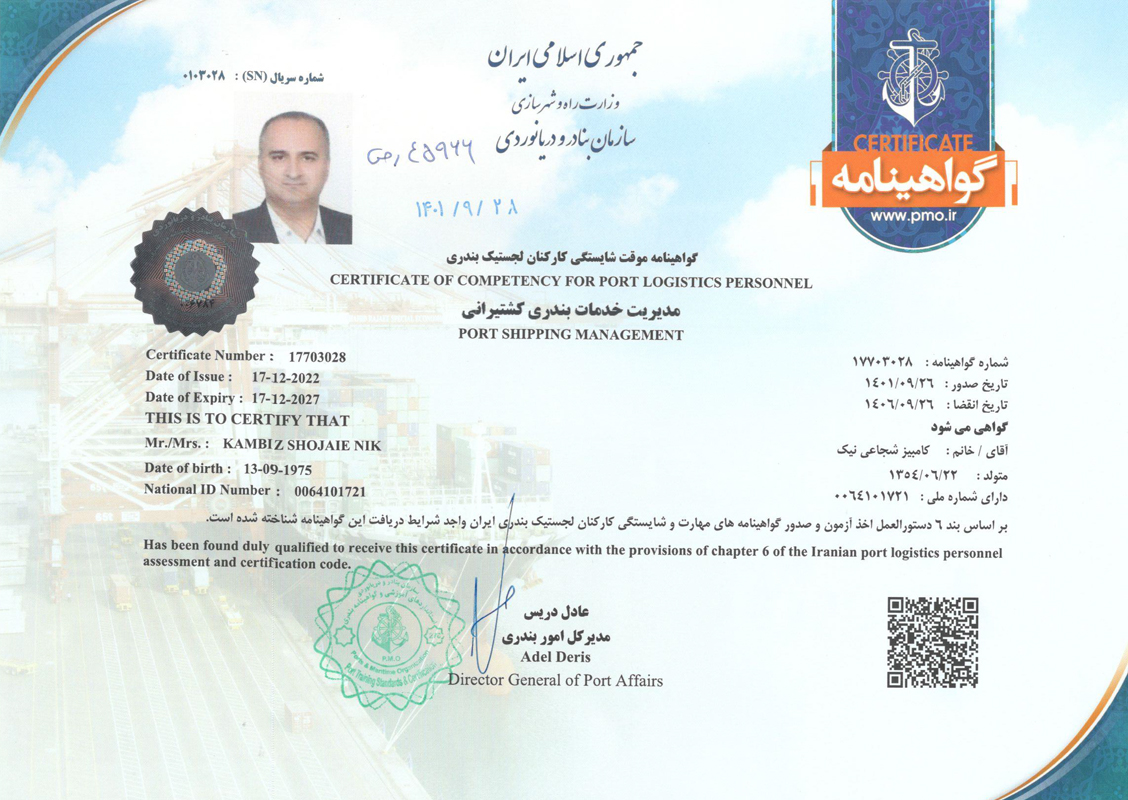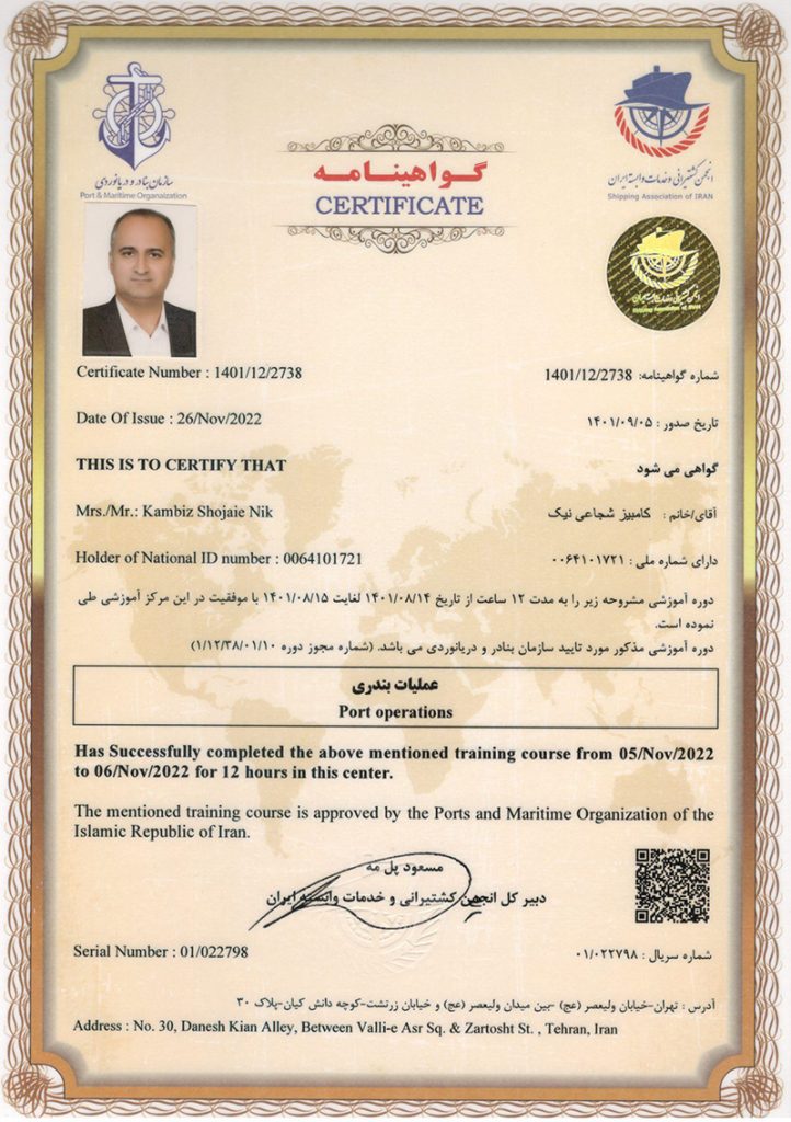 Port shipping management certificate