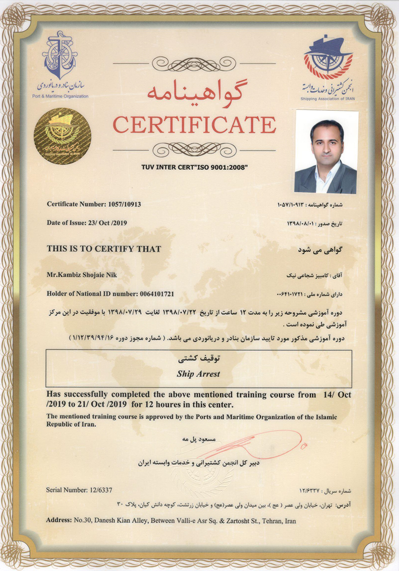 Ship arrest certificate