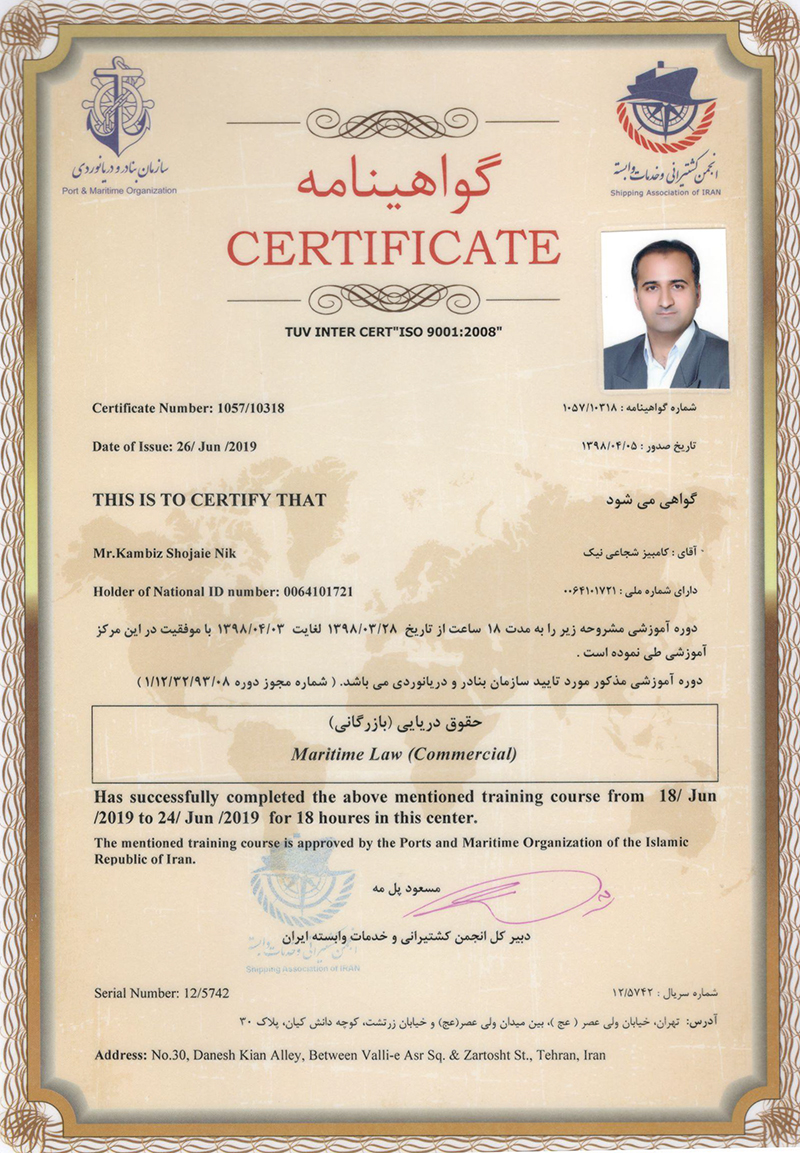 Maritime law (commercial) certificate