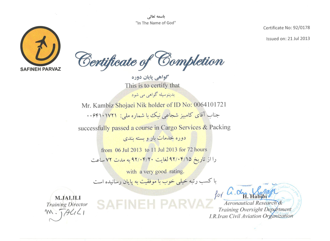 Cargo services & packing course certificate