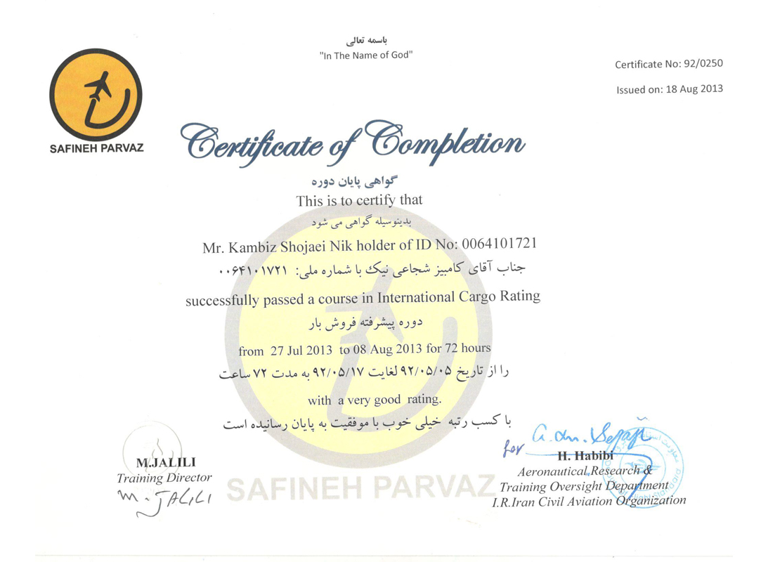 International cargo rating course certificate
