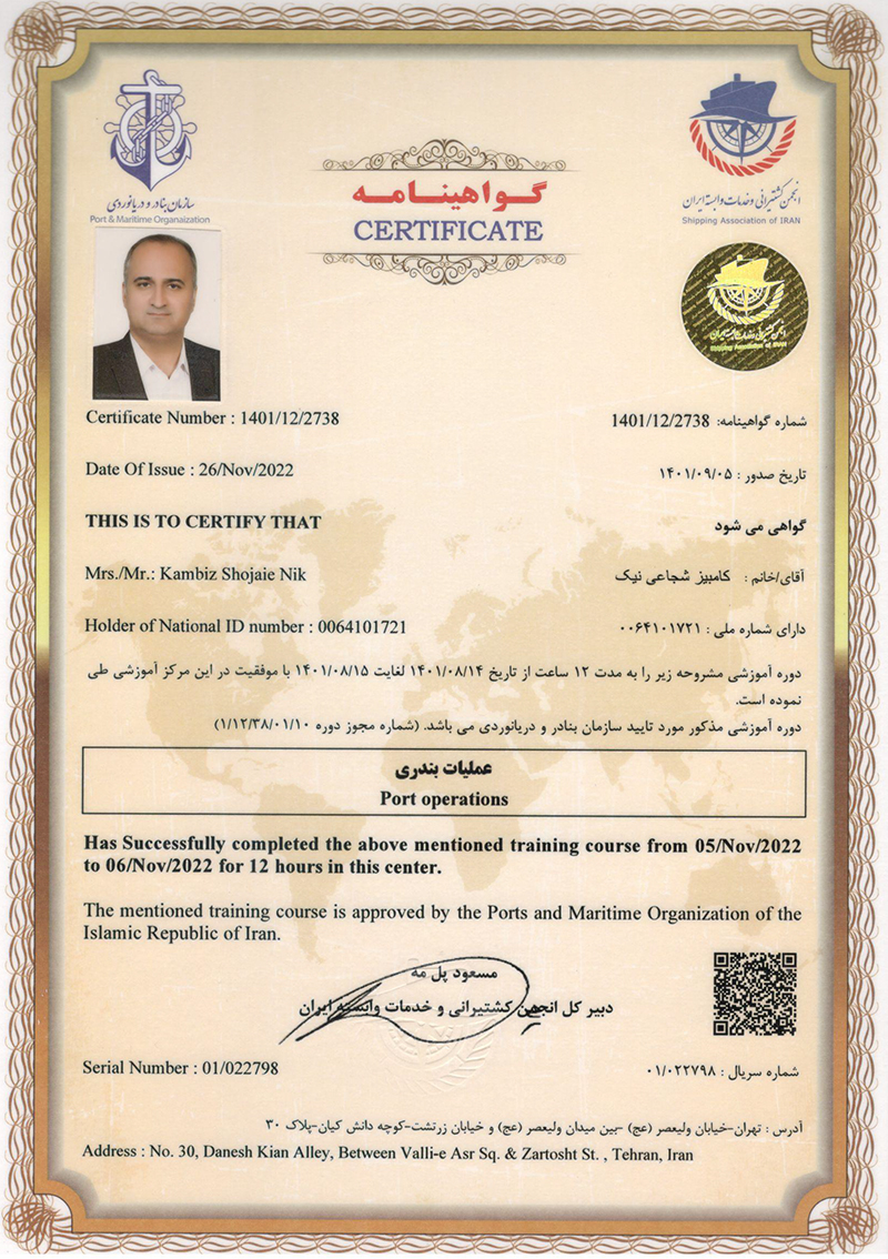 Port operation certificate