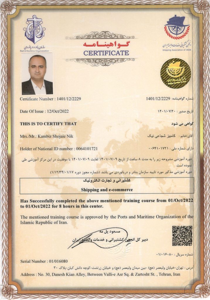 Kambiz Shojaei Nik started his professional career in 1998. He worked for two years in the technical and professional organization in a prestigious job as a teacher, and then in 2000, he started working in the Atomic Energy Organization of Iran, which continued until 2005. Due to their personal interest in business and entrepreneurship, they were consulting in logistics companies part-time from 1380 and finally entered the global trade market professionally from Nowruz 1384.